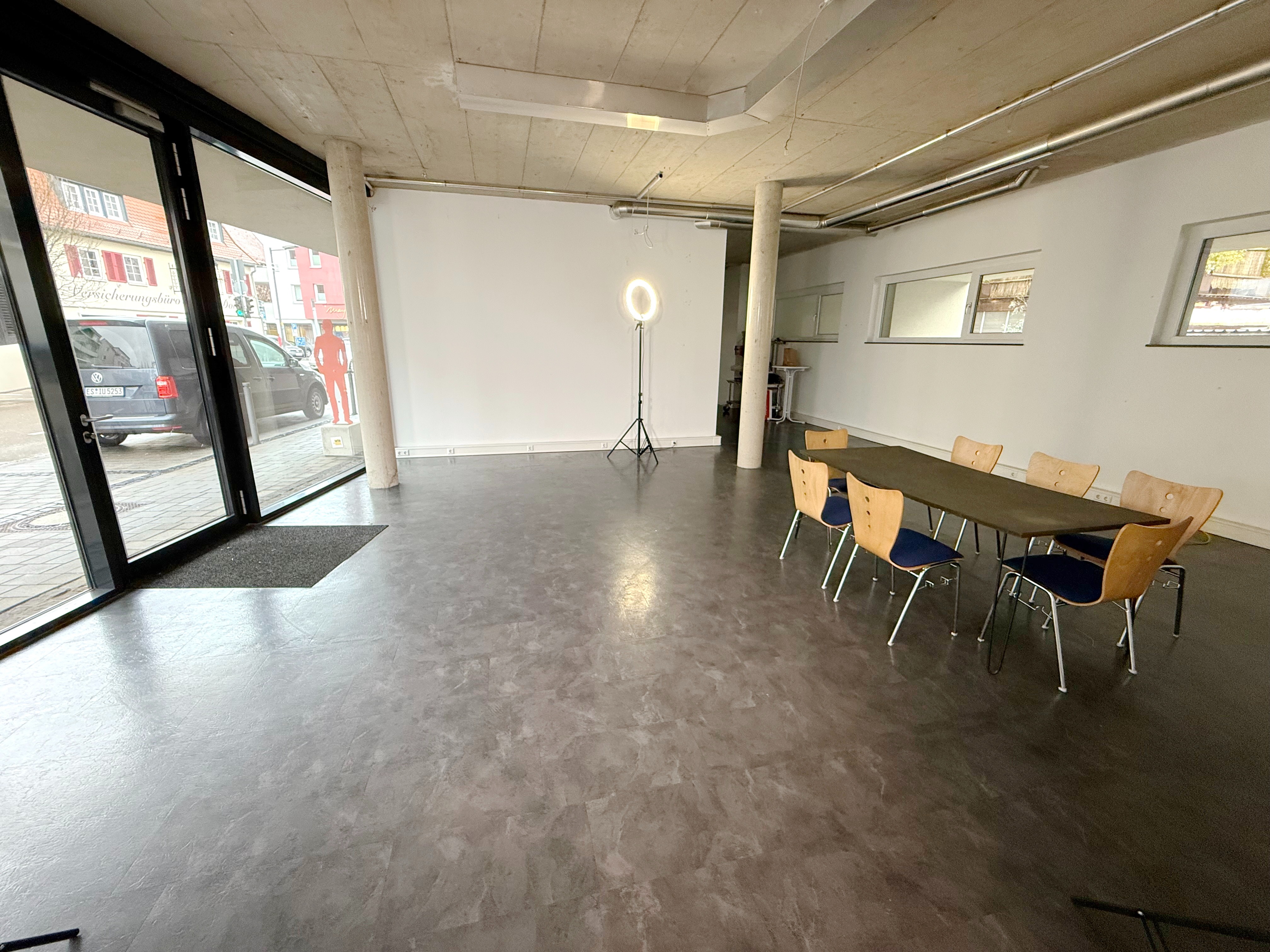 Diese moderne Gewerbefläche befindet sich in zentraler und gut frequentierter Lage von Reichenbach an der Fils. Die Immobilie profitiert von ihrer guten Sichtbarkeit, da sie sich direkt an der Durchfahrtstraße befindet – ideale Voraussetzungen für ein erfolgreiches Café-Konzept.
