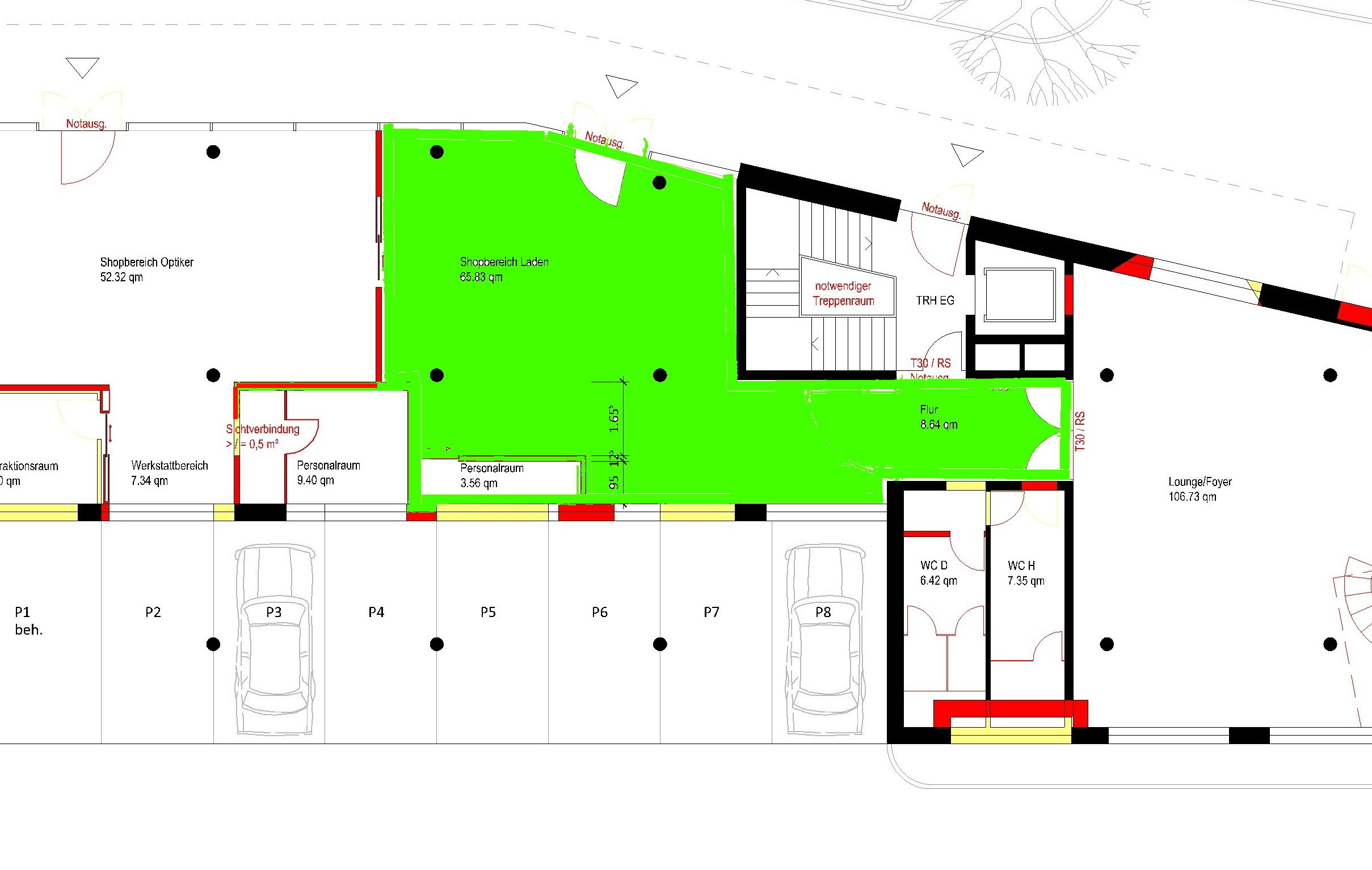 Für das Ladengeschäft stehen mehrere Kunden-WCs (Damen und Herren) zur Verfügung, die mit anderen Geschäften gemeinschaftlich genutzt werden.